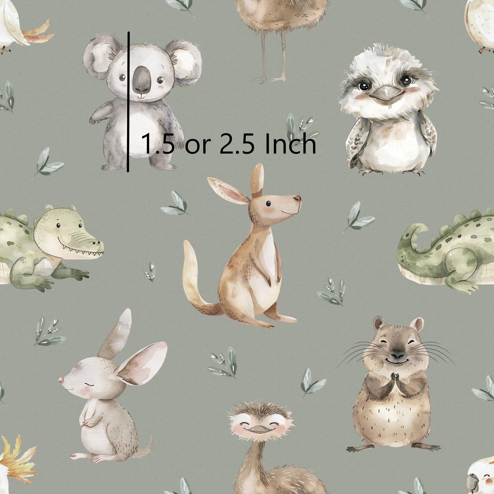 Aussie Animals 2.5" - Moss - Woven Cotton Fabric